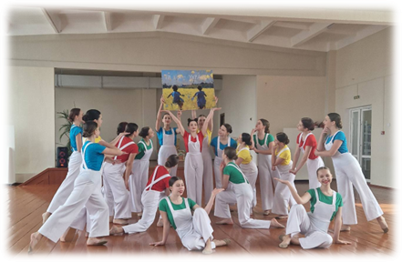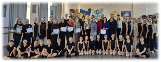 Під час практичного заняття педагоги-учасники з захопленням вивчали надзвичайно корисні вправи пілатеса на збереження рівноваги. На завершення семінару усі учасники разом з вихованцями колективу станцювали український народний танець.