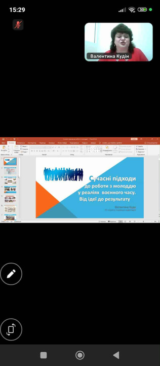Валентина Кудін, фахівець ГО «Центр соціальної адаптації» Черкащини детально розповіла у своєму виступі про усі аспекти підготовки проектної діяльності: «Від ідеї до результату: стратегії реалізації учнівських проєктів, як дорожня карта для нового координатора учнівського самоврядування».